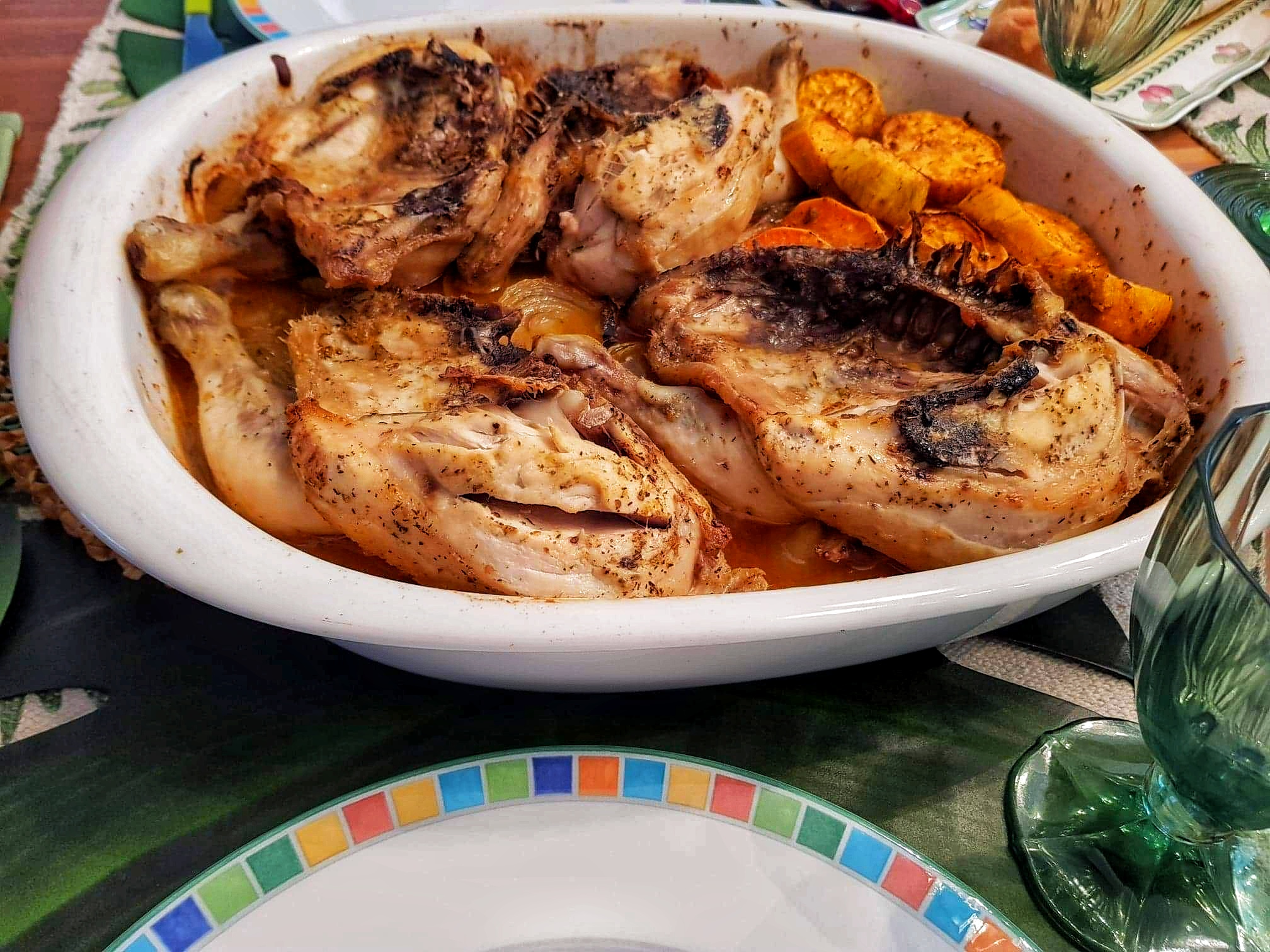 mayo 03, 2021Hoy comparto con todos ustedes una receta muy fácil de preparar, sencilla, que ni requiere mucho esfuerzo y queda súper bien. El resultado: un buen pollo asado al horno, muy cargado de aromas, con la carne muy tierna por dentro y, ese toque crujiente, que está para "chuparse los dedos".